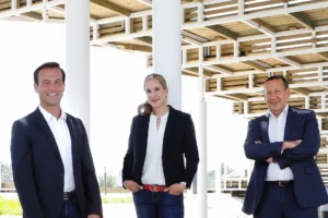 Die Teams von MeduSoil, SUPSI und Tibio in der Produktionsstätte von MeduSoil. Von links nach rechts: Benoit Pinot, Dr. Dimitrios Terzis, Camilla Perego, Coraline Imsand, Dr. Wolfgang Schwartzkopff, Roberto Perez,